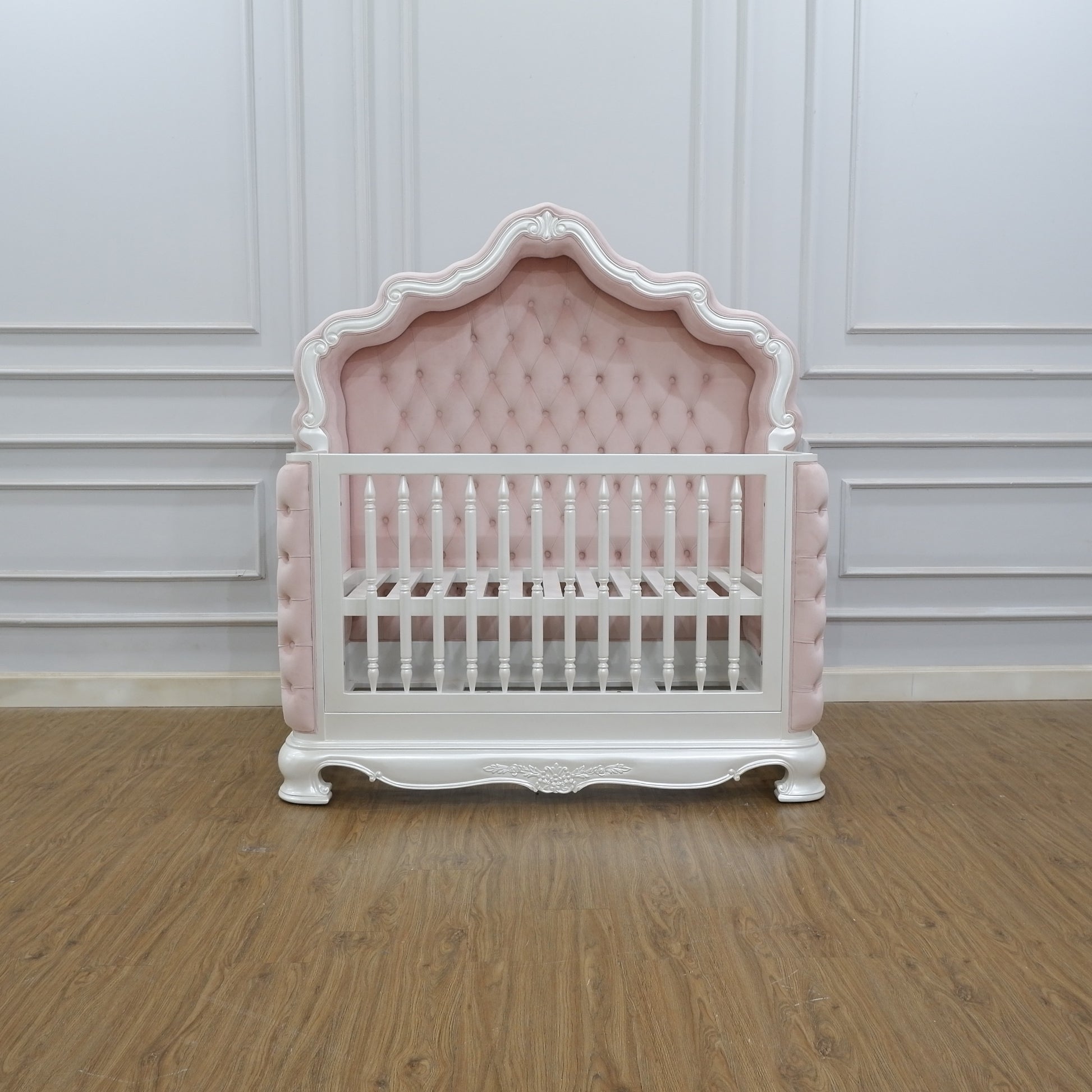 Our Belle cot exudes luxury fit for a prince or princess. Inspired by French design, it boasts exquisite quilted upholstery and is handcrafted from mahogany. With various paint and fabric options, it's sure to be the perfect fit for your little one.