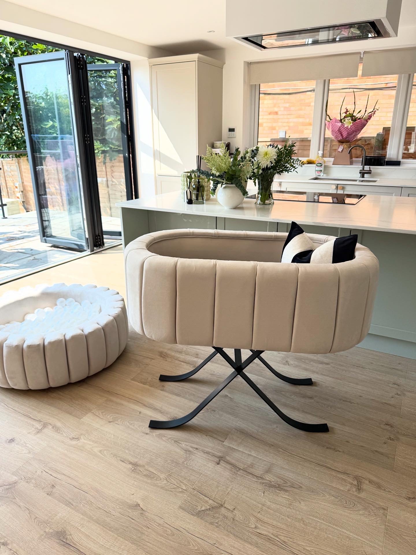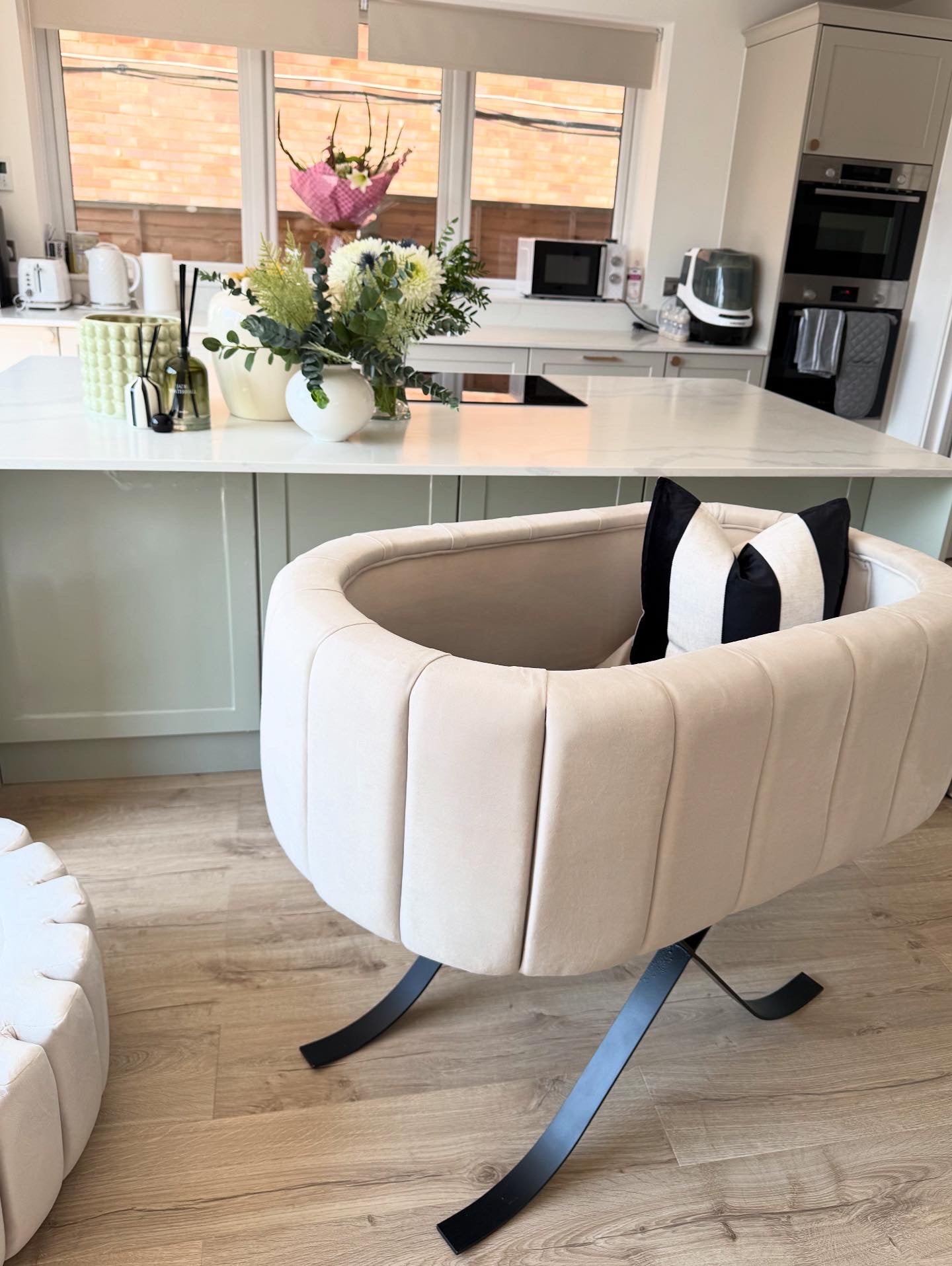 Stainless steel legs finish off this luxury bassinet.